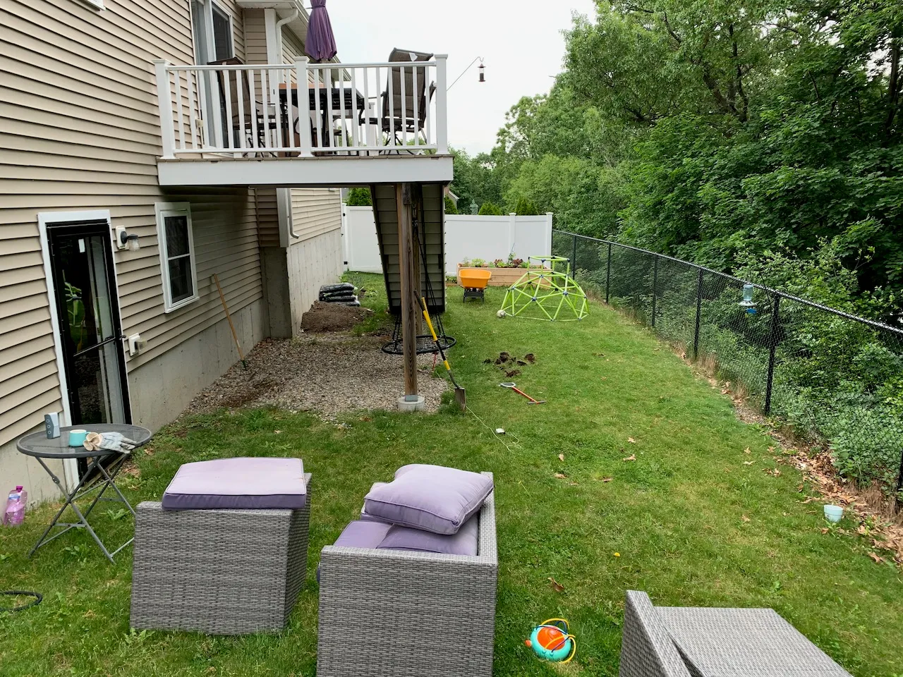 - As a New Englander my instinct when taking a break from one type of work is to do a different type of work, so I finally started doing something about our backyard situation. It started as: