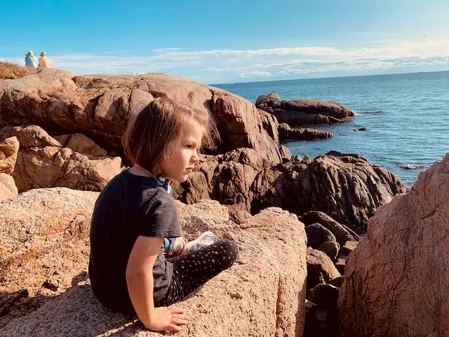 this slightly angry face was brought about by me insisting she could not climb down the rocks to get closer to the water